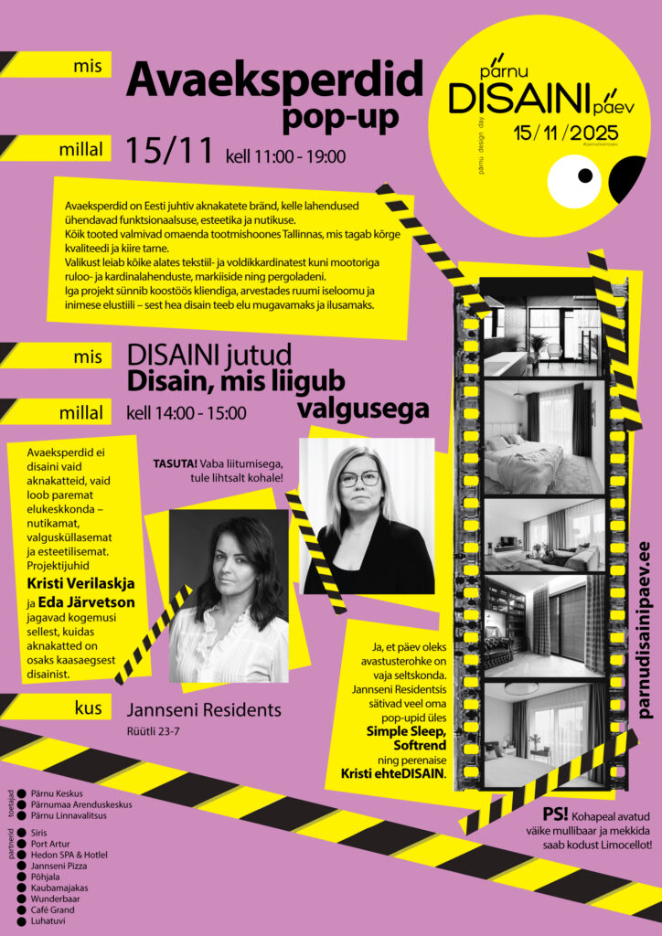 ⚫ Pärnu Keskus   ⚫ Pärnu Linnavalitsus   ⚫ Pärnumaa Arenduskeskus  ⚫ Siris  ⚫ Port Artur   ⚫ Põhjala Pruulikoda   ⚫ Jannseni Pizza  ⚫ Kaubamajakas    ⚫Wunderbaar    Hedon SPA & Hotel   ⚫ Café Grand   ⚫ Luhatuvi