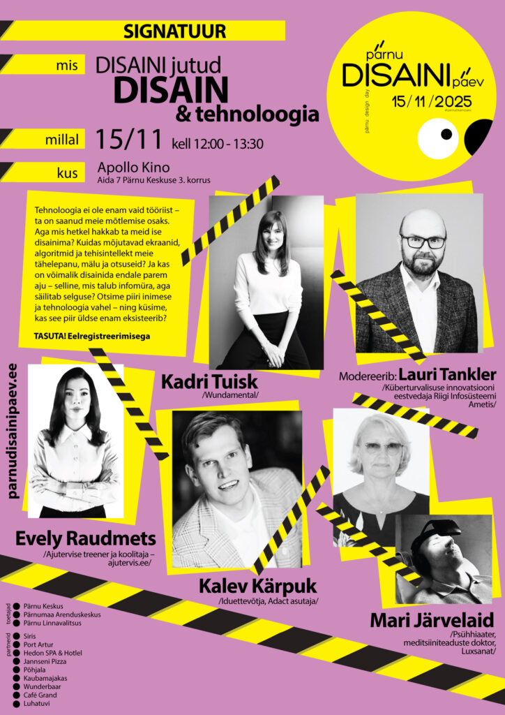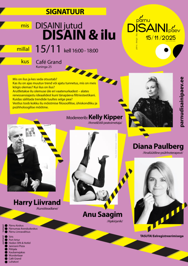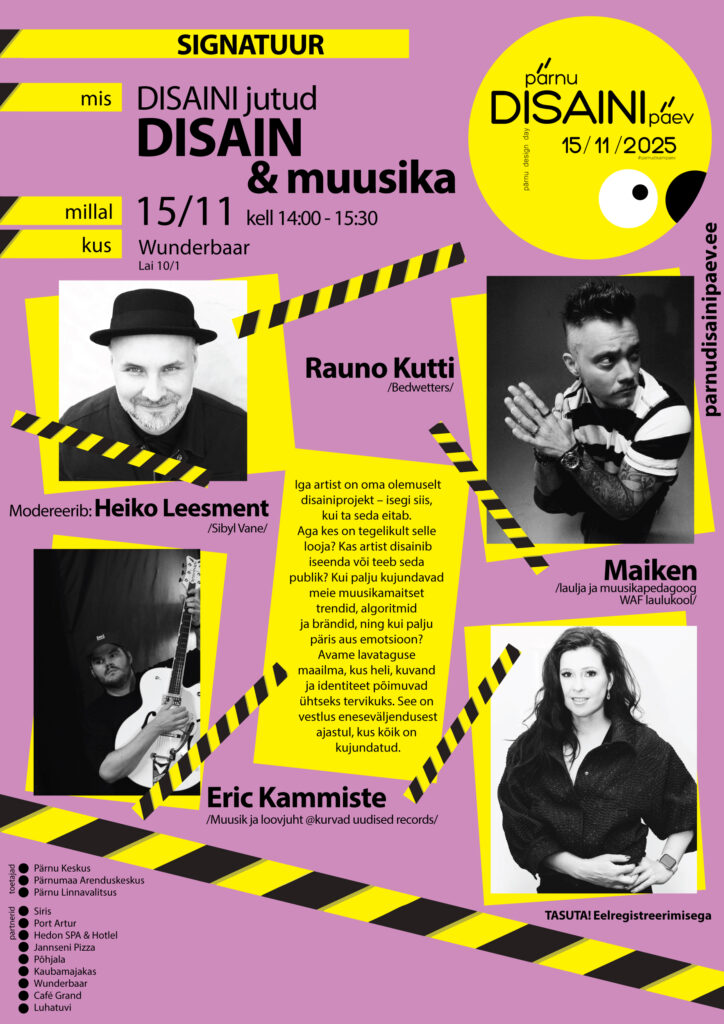 Disainirütme keerutavad DISAINI päeva sõbrad, külalised, kuulsused ja coolid. Tule tiksu disainis ja hea muusika saatel!